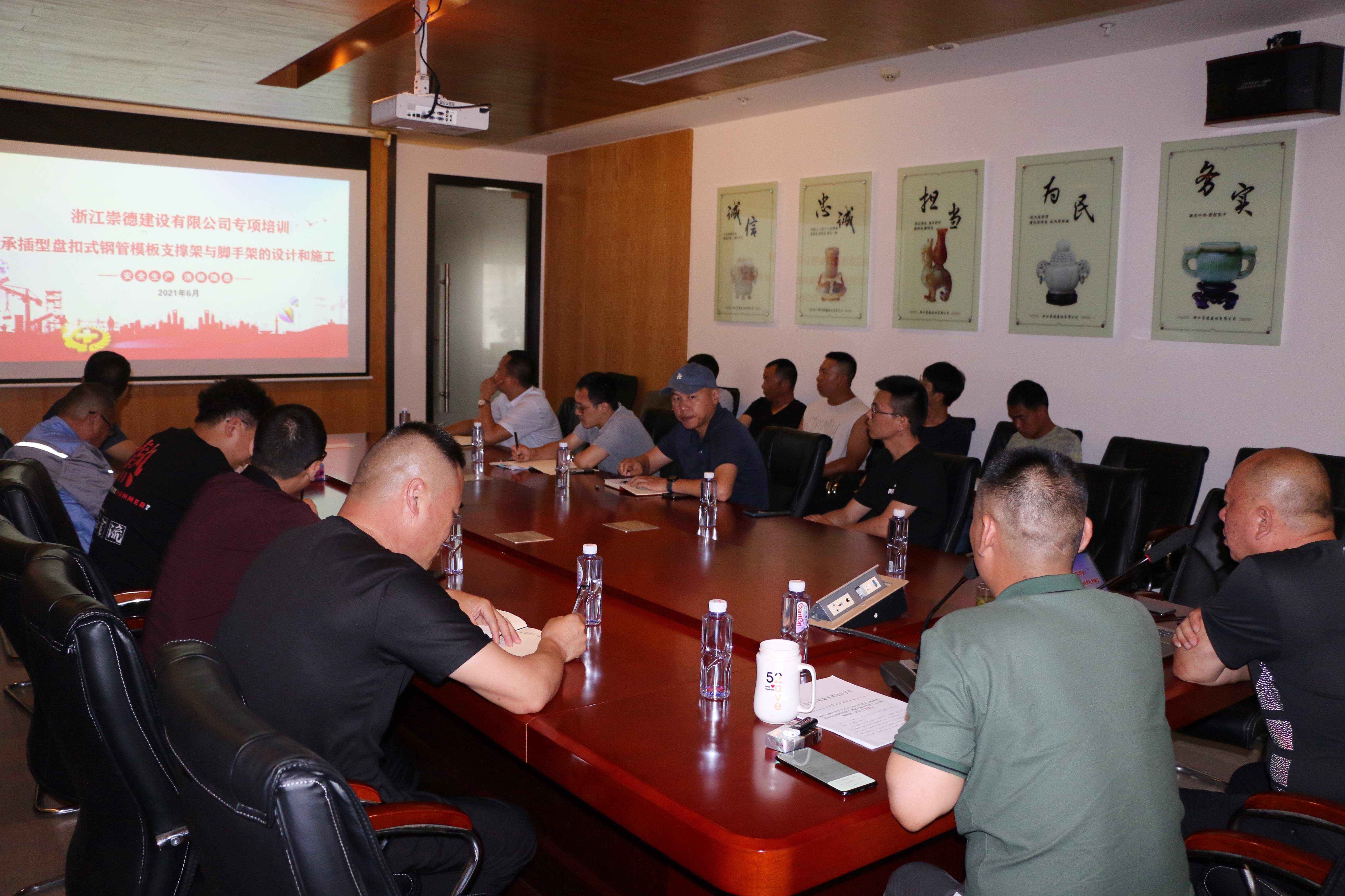為適應公司高質量發展需要,提高公司施工技術、工程質量和安全生產水平,根據嘉興市住房和城鄉建設局《關于加強模板支撐體系安全管理和承插型盤扣式鋼管腳手架推廣應用的通知》文件要求,2021年6月16日下午,浙江崇德建設有限公司組織開展承插型盤扣式鋼管腳手架推廣應用專題培訓。桐鄉市建筑業行業協會秘書長趙建榮應邀出席并授課,公司重點項目部施工管理人員、班組負責人及相關部門人員等40余人參加。