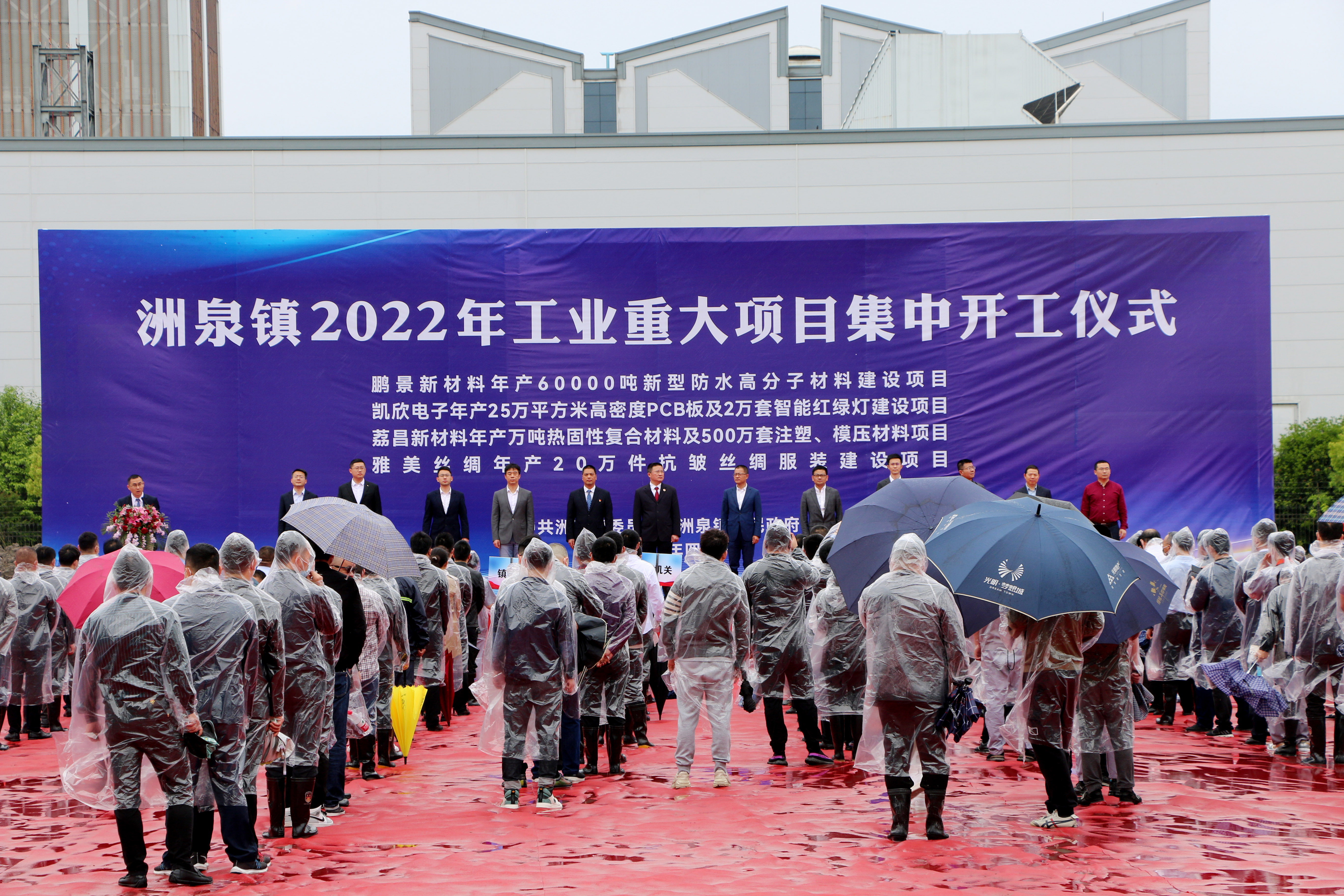 熱烈祝賀洲泉鎮2022年工業重大項目集中開工儀式在我公司承建的鵬景新材料建